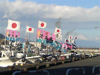 写真は、かまぼこ屋根の歌詞に出てくる、小川港から見える富士です。今日はかなりきれいでした。正月、漁船は大漁旗をあげます。毎年この色とりどりの大漁旗をみるのを楽しみにしてます。